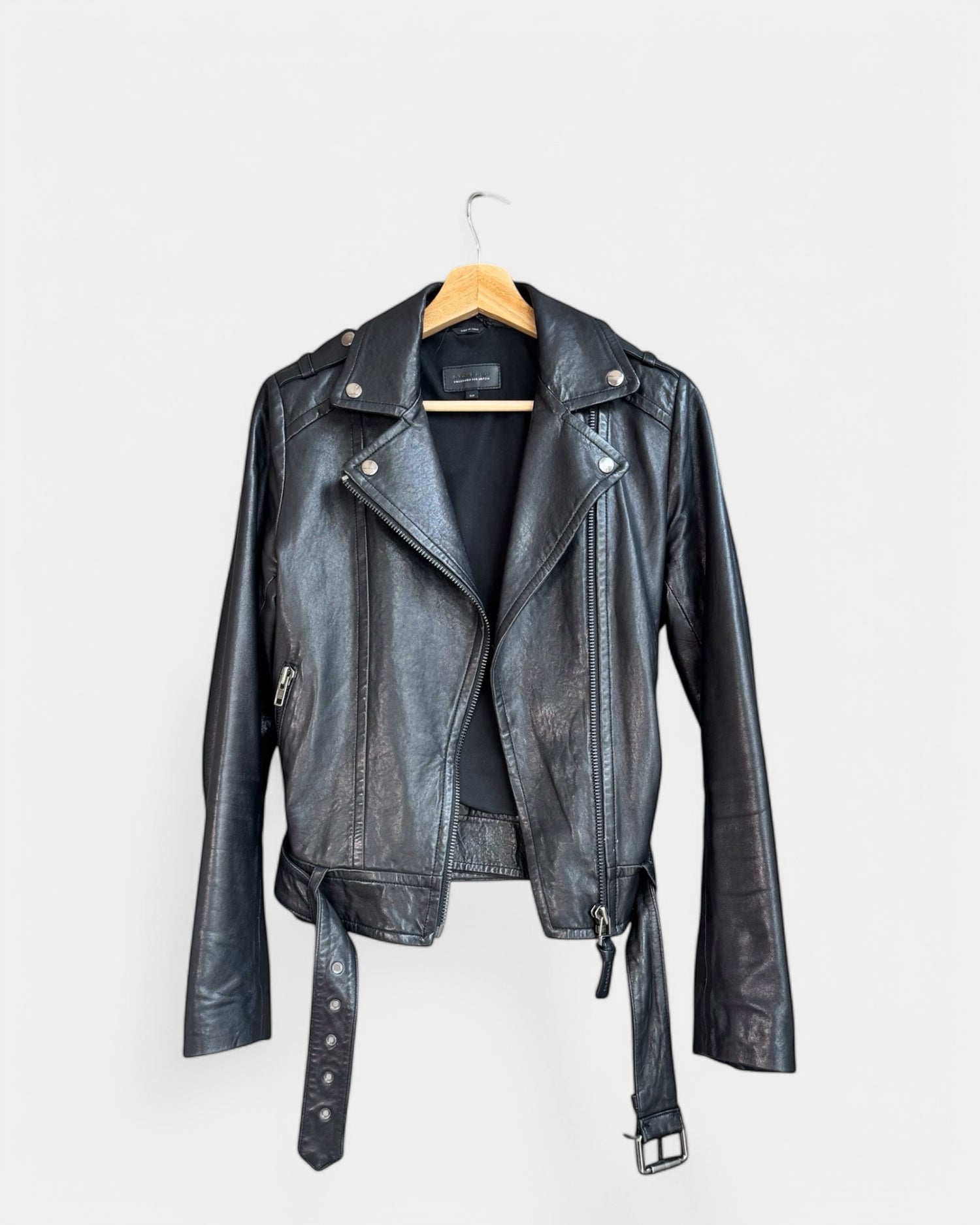 Veste en cuir d’agneau véritable, coupe ajustée avec fermeture éclair asymétrique. Col à revers à pressions, épaulettes structurées, poches latérales zippées et ceinture réglable à boucle. Doublure satinée pour un confort optimal. Look urbain et intemporel.